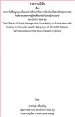 ผลการให้ข้อมูลแบบสั้นและคำปรึกษาเรื่องการป้องกันเพื่อส่งเสริมสุขภาพต่อพฤติกรรมสุขภาพผู้ติดเชื้อเอชไอวีและผู้ป่วยเอดส์สถาบันบำราศนราดูร = Effectsof Short Message and Counseling on Prevention with Positive to Promote Health Behaviors of HIV/AIDS Patien |